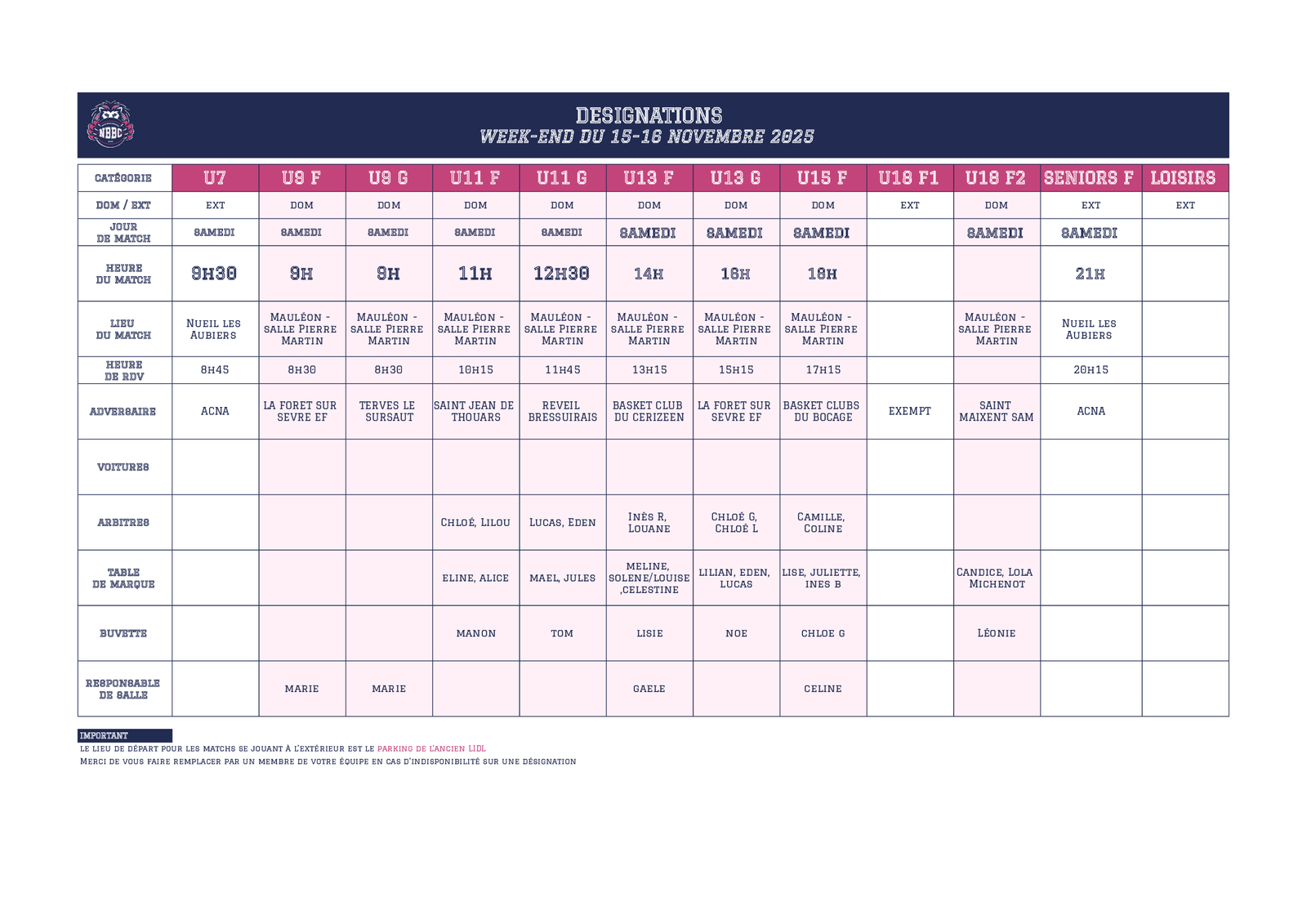 PLANNING ENTRAINEMENTS saison 2025/2026