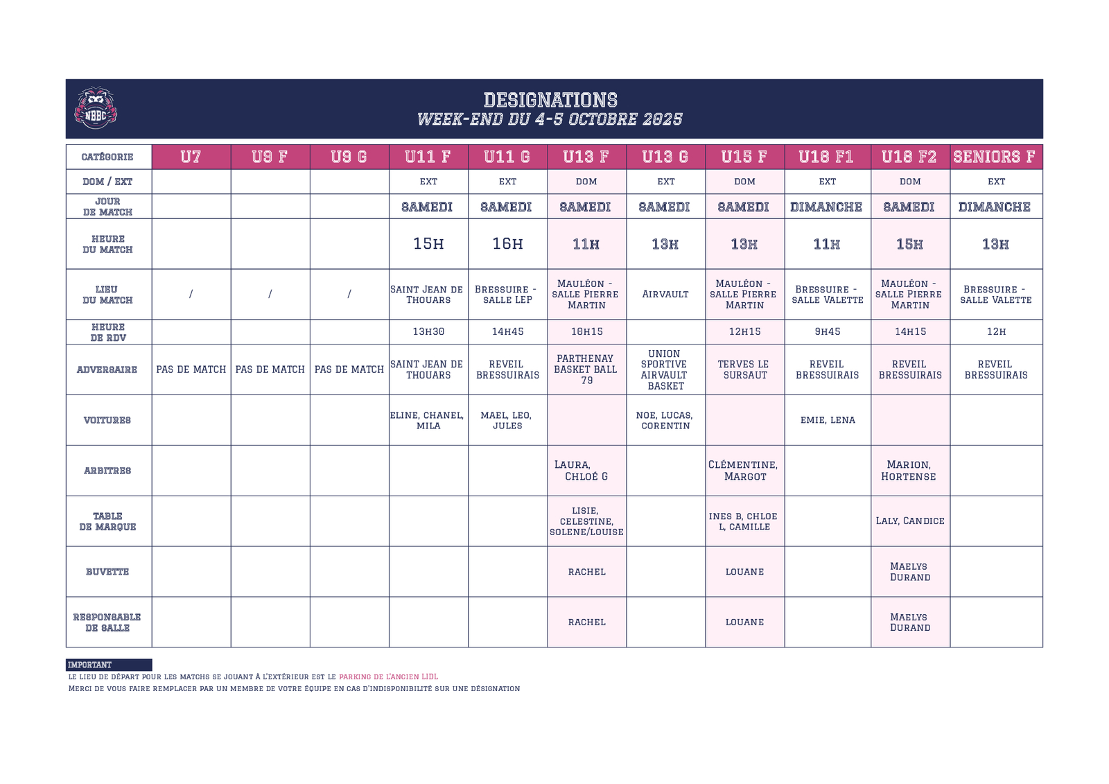 PLANNING ENTRAINEMENTS saison 2025/2026