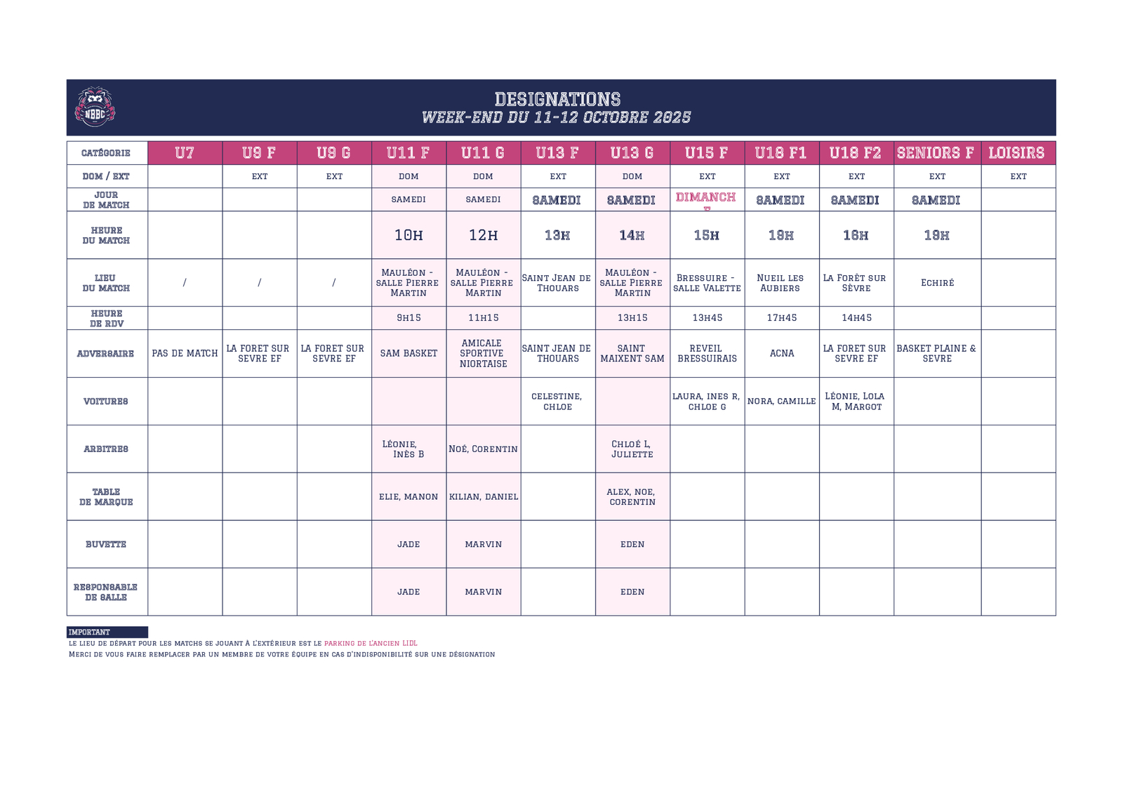 PLANNING ENTRAINEMENTS saison 2025/2026