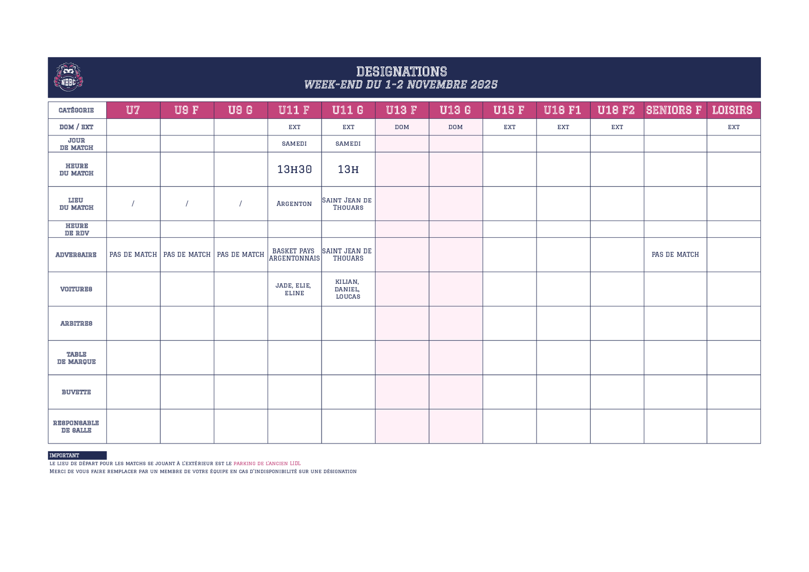 PLANNING ENTRAINEMENTS saison 2025/2026