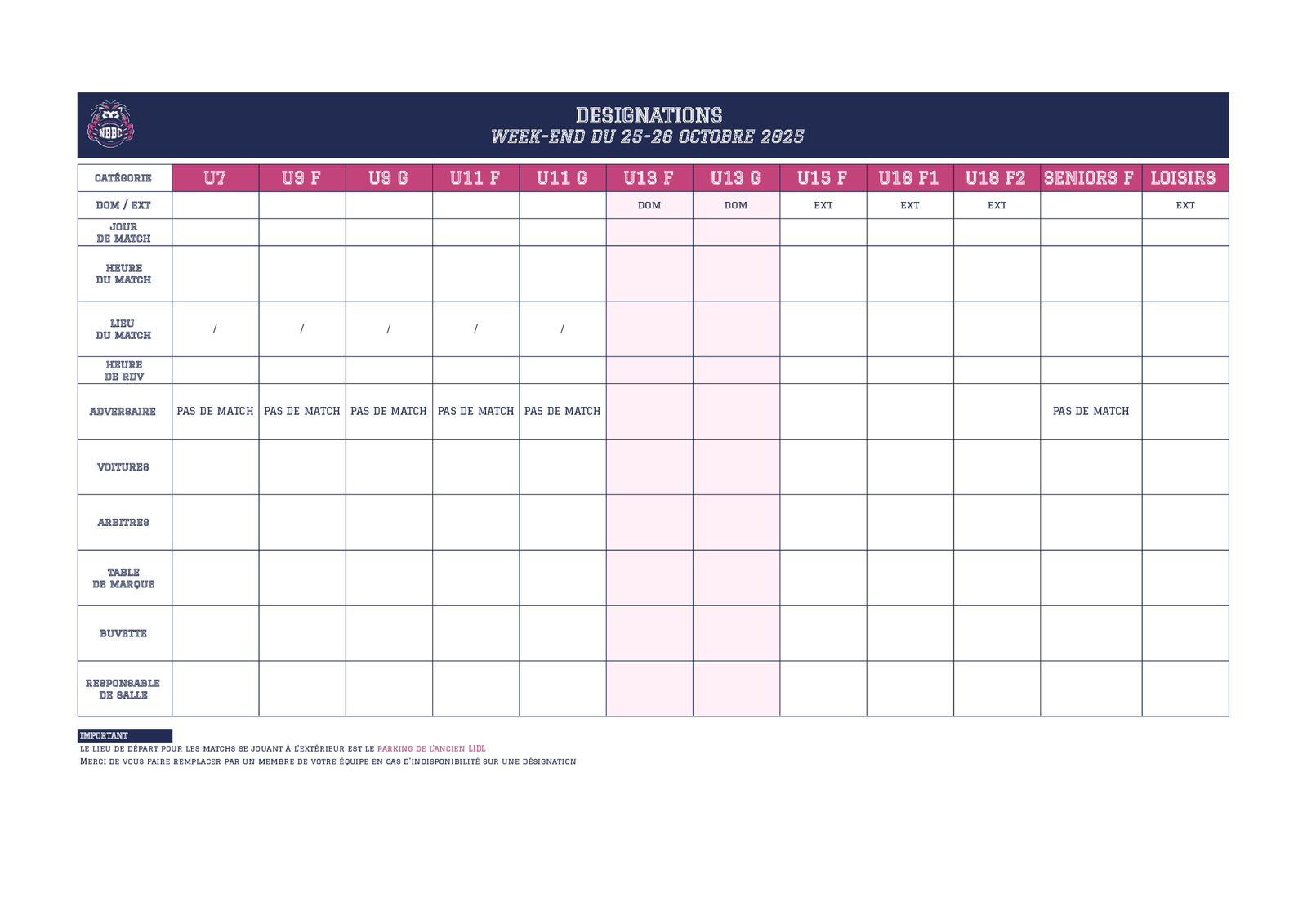 PLANNING ENTRAINEMENTS saison 2025/2026
