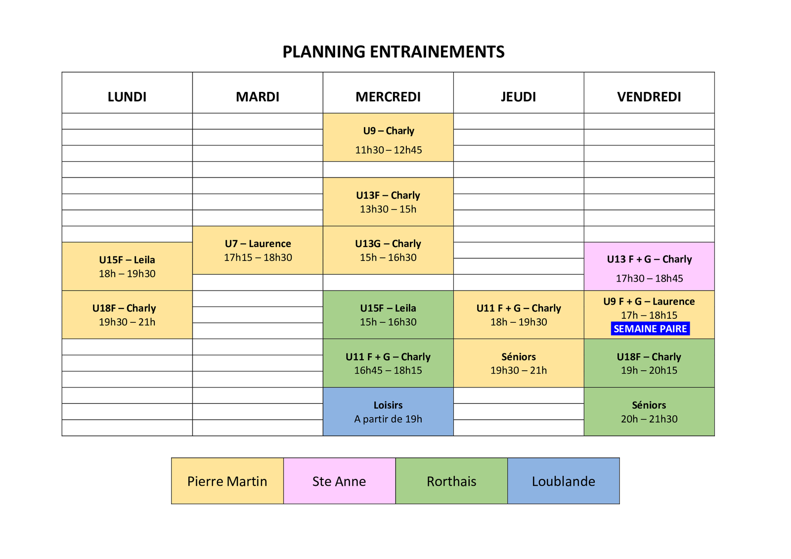 PLANNING ENTRAINEMENTS saison 2025/2026